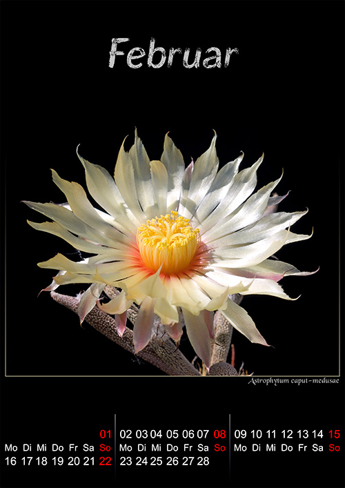 Je nach Standort kündigt sich bei einigen wenigen Kakteen durch das Erscheinen erster zaghafter Knospen das nahende Ende der Ruheperiode an. Die Tage werden wieder etwas länger, die Kraft der Sonne nimmt langsam zu. Die meisten Kakteen werden an ihrem kühlen und möglichst hellen Standort trocken gehalten. Epiphytische Kakteen stehen wärmer und erhalten regelmäßig etwas Wasser.