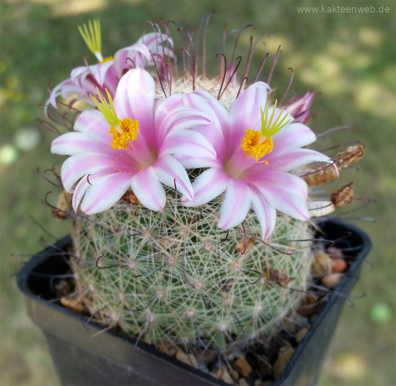 Die weißen Blüten mit der rosa Zeichnung in der Mitte öffnen sich in den Monaten Juni bis August.