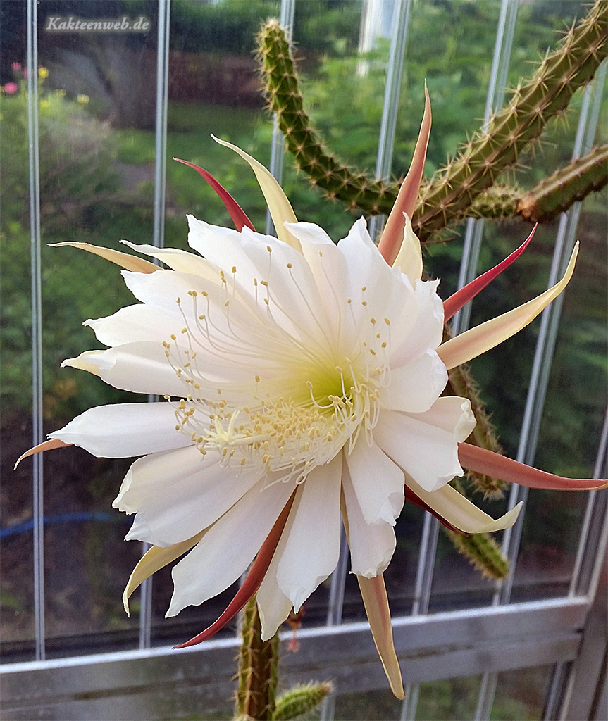 Blütezeit: Juni/Juli, Blüten weiß, ca. 20 cm lang, duftend, in den frühen Abendstunden sich öffnender Nachtblüher